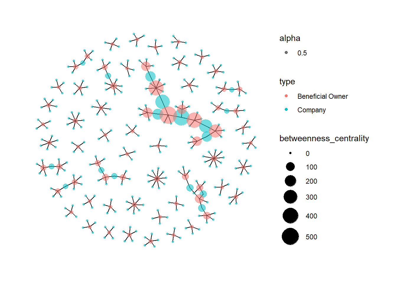 # Extract onwers with more than 3 companiesowners<-mc3_edges %>%filter(type=='Beneficial Owner') %>%group_by(target) %>%summarise(company_count=n()) %>%filter(company_count>3)